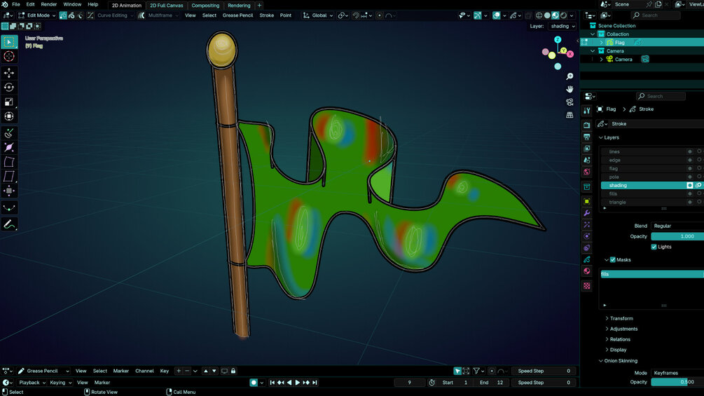 Frame per Frame Rippling Flag Animation | Blender Grease Pencil