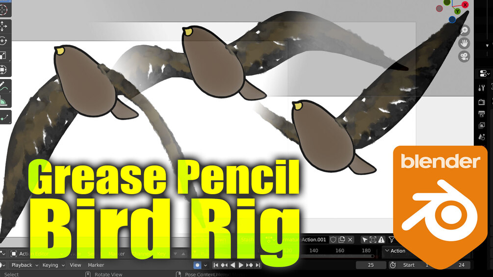 Grease Pencil 3D Flying Bird Rig - Blender 3.4